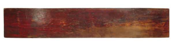 Altar table comprised of a thick , long and rectangular top of heavy wood, sitting atop but not joined to two tripod legs.