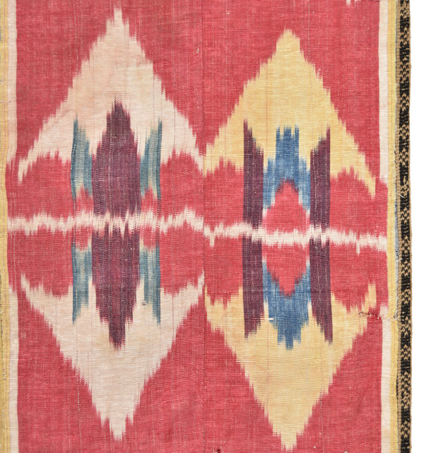 Uzbek ikats are typically warp tie-dyed with somewhat inexact registry which makes them so appealing.