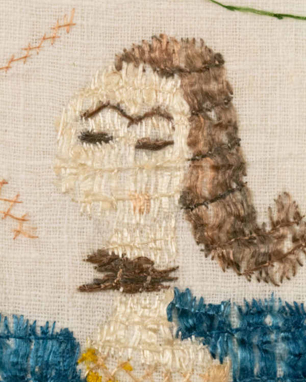 Condition: one small hole to ground and some corrosion to the embroidery, very good condition