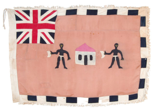 The British Union Jack identifies either a fante flag made pre-independence or flags made for commercial purposes. Fante flags that include the Ghanaian flag were made post independence but in most cases were not made to be sold.