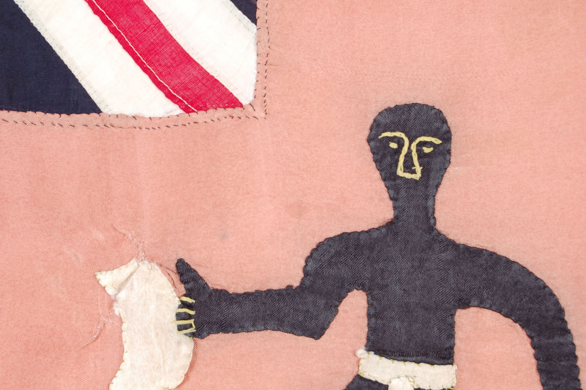 This Fante Asafo flag was made in Ghana in the second quarter of the 20th century out of silk applique.