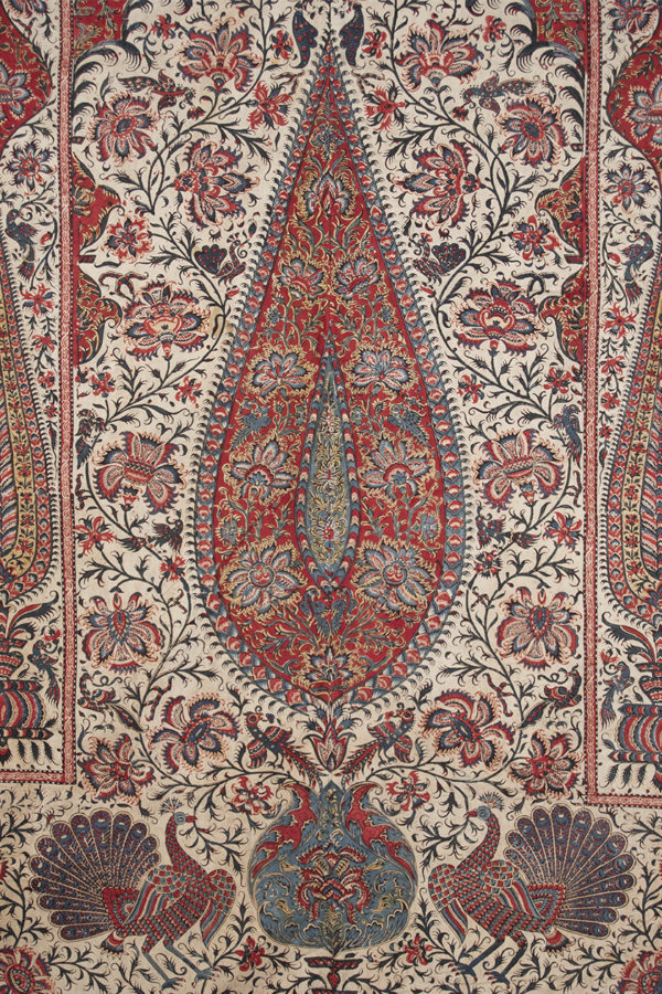 This piece was made to be a wall hanging based on the design of the borders, and was made in India for the Persian market.