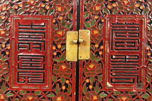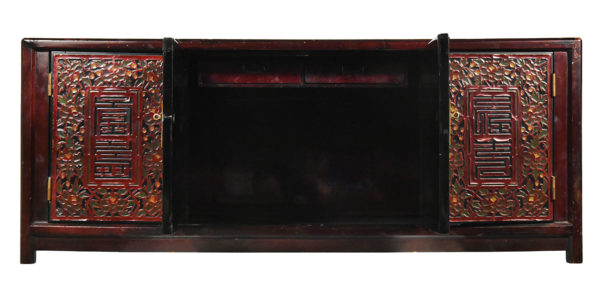 Korean lacquered chest or scholars table with a carved polychromed facade.