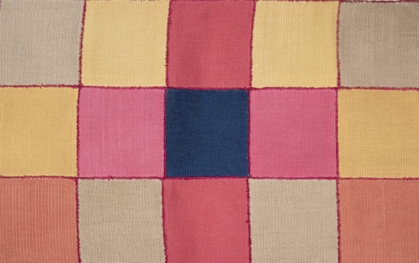 This typically square form pojagi is made of a patchwork of colorful ribbons sewn together in a raised decorative stitching. The concentric design features several hues of grey punctuated with other colors. Interestingly abstraction in Korean wrappings was in place long before western artists embraced abstract concepts in art.