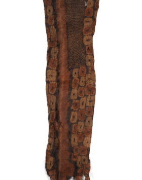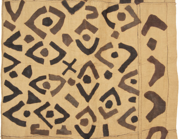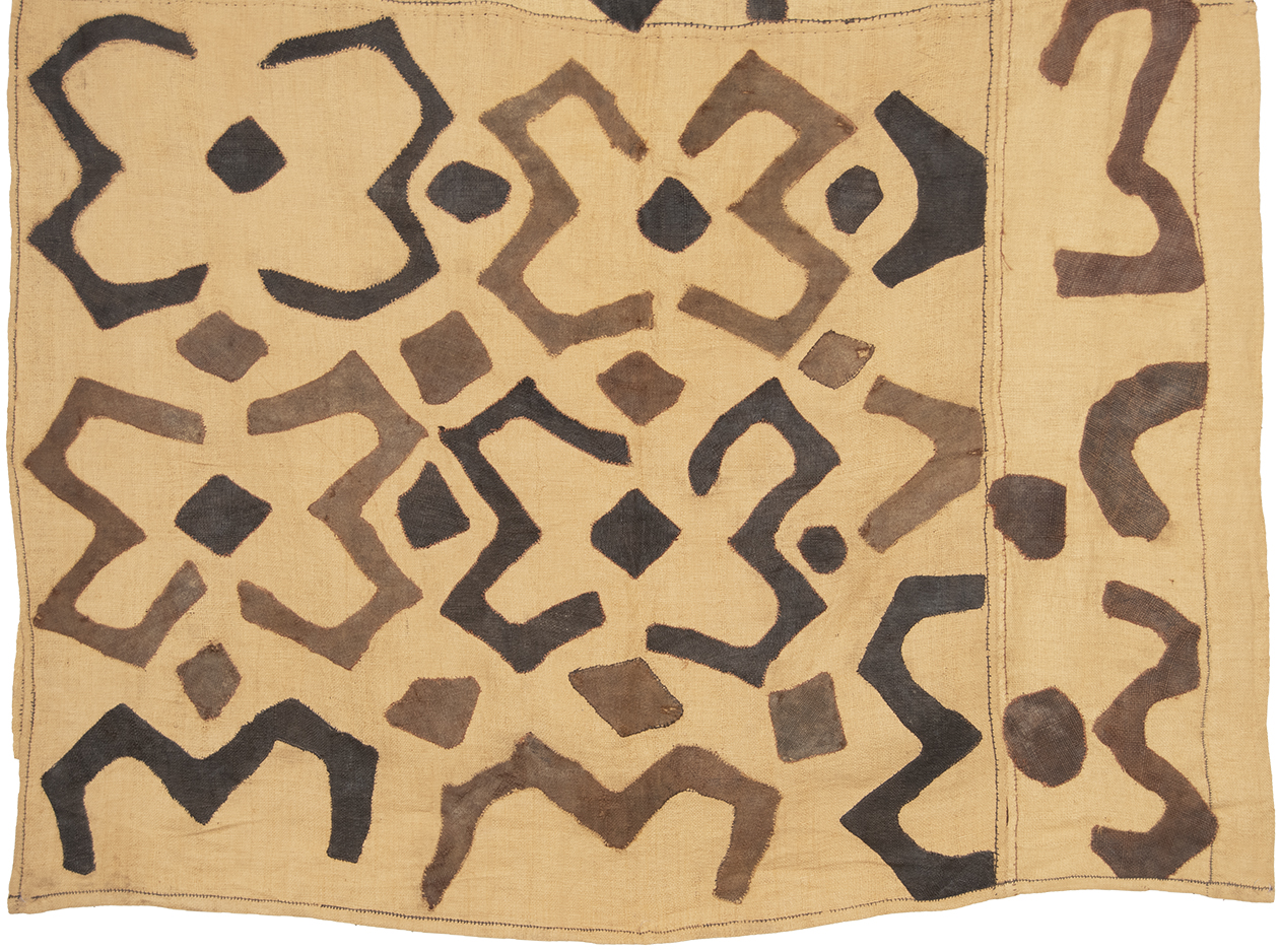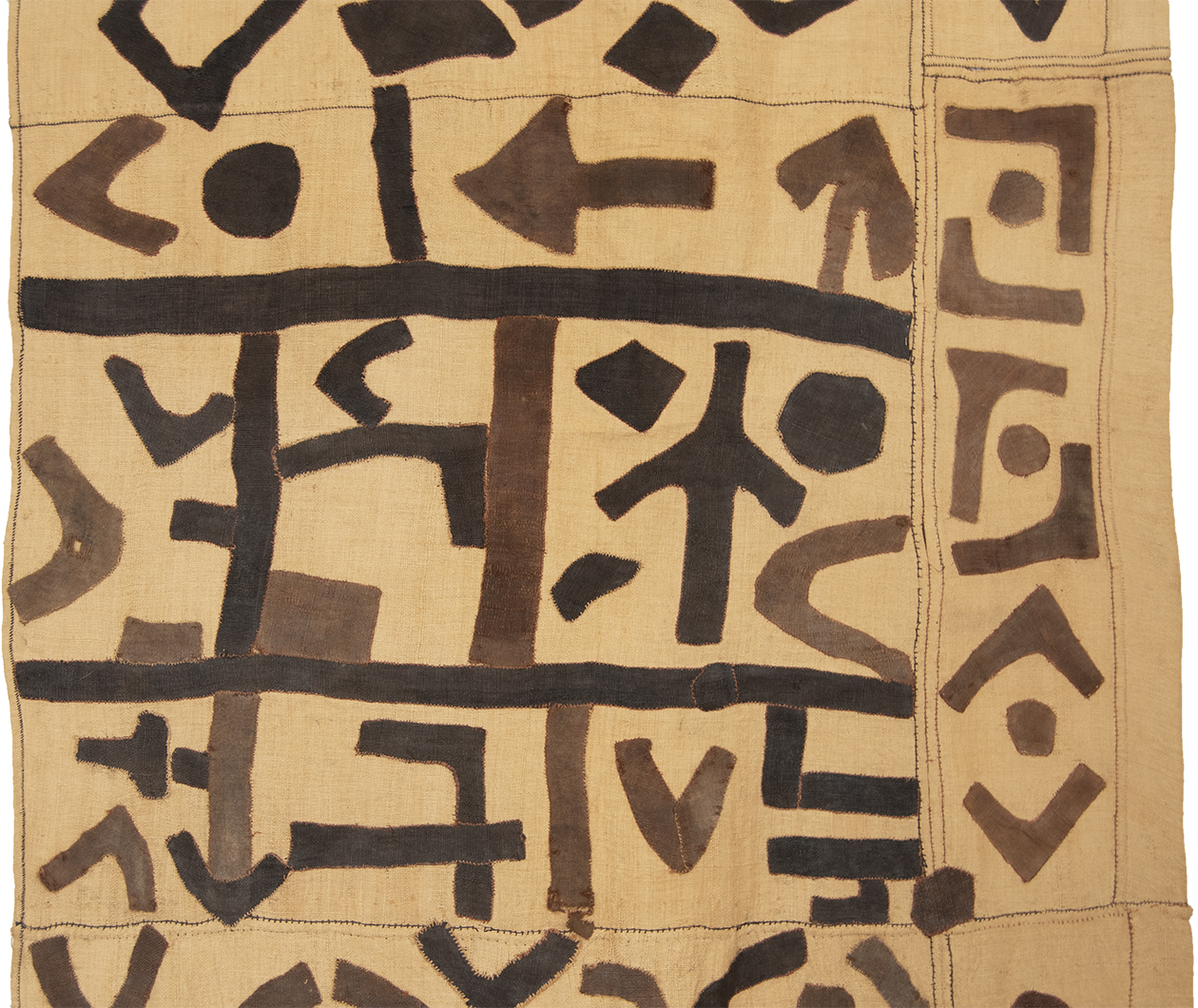A ceremonial skirt of a man, made of raffia and decorated with applique work. The applique work, beside being a decorative element, also fulfills a function. The freshly woven raffia is a stiff material and has to be washed and pounded to make it supple. As raffia is not very strong, the washing and pounding often result in holes which the decorative applique conceals.