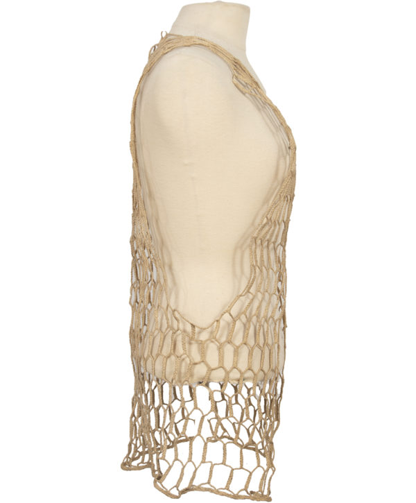 Vest made of paper folded, braided and tied into a loose netting. Woven paper textiles originated in Japan in the 16th century.They are called shifu and were most likely developed by the impoverished rural population for lack of other materials.
