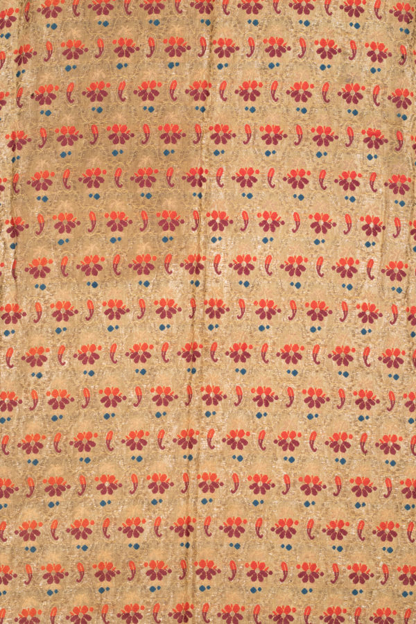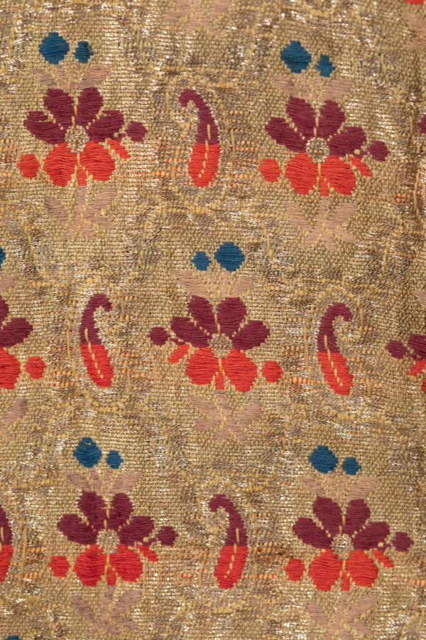This brocade is a richly decorative shuttle-woven fabric with richly colored silk threads.