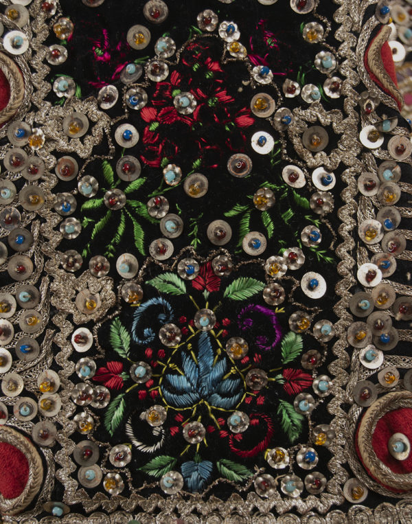 The Romanian National Party was established in the 1880’s in order to raise the profile and representation of its people in the parliament. Later on in the 1920’s when Romania was independent it was part of the governing coalition. One of the areas for establishing the identity were the regional costumes. This coat is part of that effort and obviously ceremonial. Some of the features have symbolism significant to Romania.