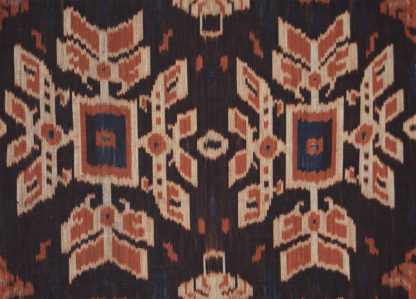 There are two distinct groups of Sumba ikats. Western Sumba ikats are abstract while eastern Sumba skates, like this one, are pictorial. Man’s hip cloths, or hinggi, would be worn for special ceremonies and events.