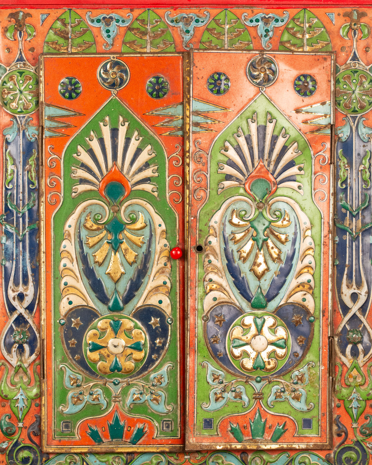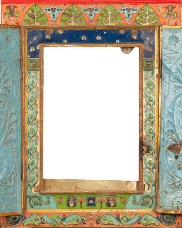 Mirrors in late 19th century Russia were hard to come by and very expensive, so they were always treated with care. Large mirrors would be hung high off the ground for protection, and then tilted forward so the owners could still see into it. Less wealthy people usually owned smaller mirrors because that was all they could afford. The shutters on this piece could have been added to keep the mirror in good condition. It is also customary in some cultures to cover mirrors during funerals, at night, or when not being used, so the shutters would make this process easy.